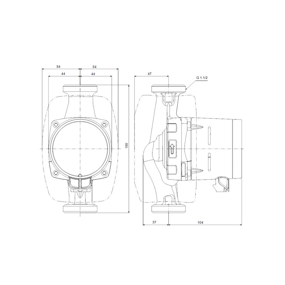 Hocheffizienz-Nassläuferpumpe mit Permanentmagnetmotor (ECM-Technologie) und integrierter, elektronischer Leistungsanpassung durch stufenlose Drehzahländerung.